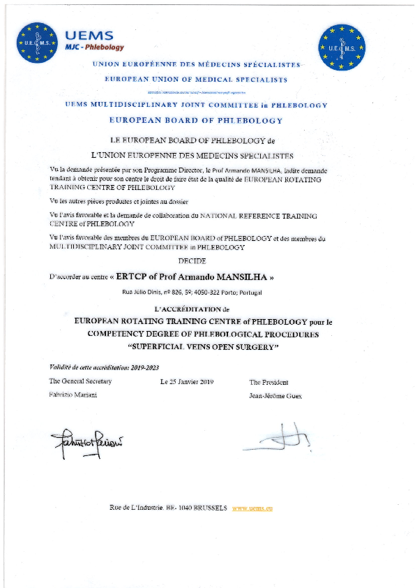 UEMS Accreditation as European Rotating Centre of Phlebology